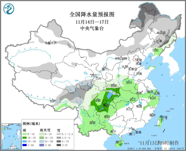 从雨雪落区来看,14日,青藏高原东部有小到中雪或雨夹雪,局地大雪;15日至16日,内蒙古东部、黑龙江、吉林中东部有小到中雪或雨夹雪,内蒙古东北部、黑龙江西北部局地大到暴雪(5~12毫米),新增积雪深度4~10厘米;16日至17日,青藏高原东部及甘肃南部、陕西南部等地高海拔地区有小到中雪或雨夹雪,局地大雪;黄淮西部、江汉、西南地区东部等地有小到中雨、局地大雨。